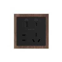 86 Type 10A 250V Five-hole Electrical Wall Socket with USB A+C Ports Outlets 45W Fast Charing Black Walnut Wood Frame