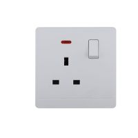 UK/British Standard 1 Gang Single Pole Switched Socket with LED 13A 250V~(PC Panel, 4 Colors)