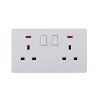 UK/British Standard 2 Gang Single Pole Switched Socket with LED 13A 250V~(PC Panel, 4 Colors)