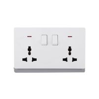 2 Gang Universal Switched Socket Electrical Outlet with Neon 16A 250V~(PC Panel, 4 Colors)