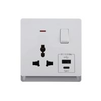 16A 250V~ 1 Gang Universal Switched Socket Electrical Outlet with Neon + Type A&C 2.1A USB (PC Panel, 4 Colors)