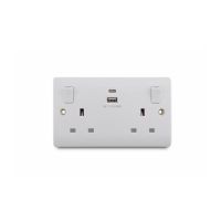 13A 250V 2 Gang Switched Socket with 5V 3.1A USB-A+C Port 15W Fast Charging