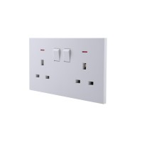 Ultra-thin Baby-skin Feeling UK/British Standard 2 Gang Single Pole Switched Socket with Neon 13A 250V~ 50Hz SP(PC Panel, 4 Colors)
