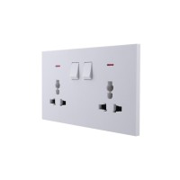 Ultra-thin Baby-skin Feeling 2 Gang Universal Outlets Switched Socket with Neon 16A 250V~ 50Hz(PC Panel, 4 Colors)